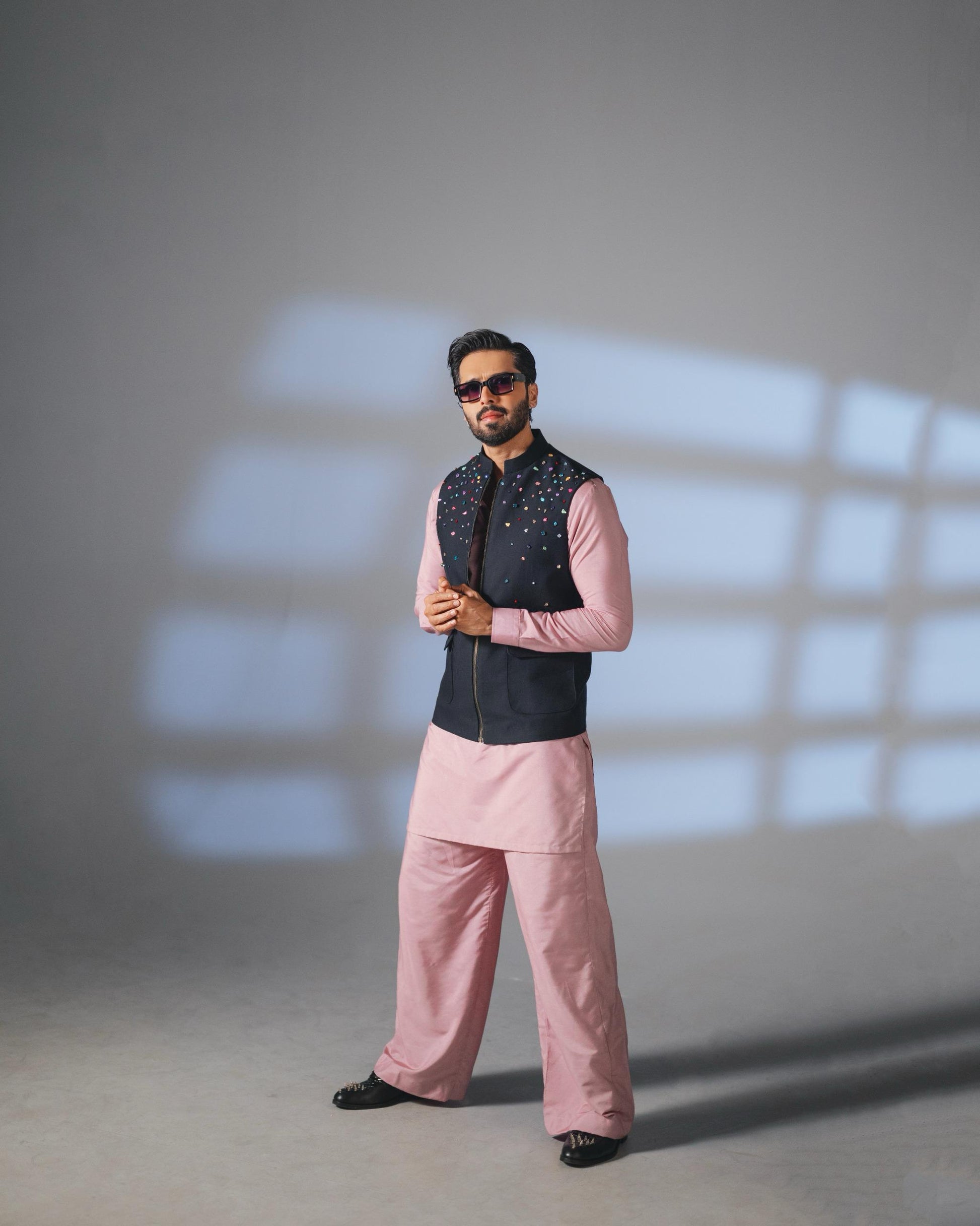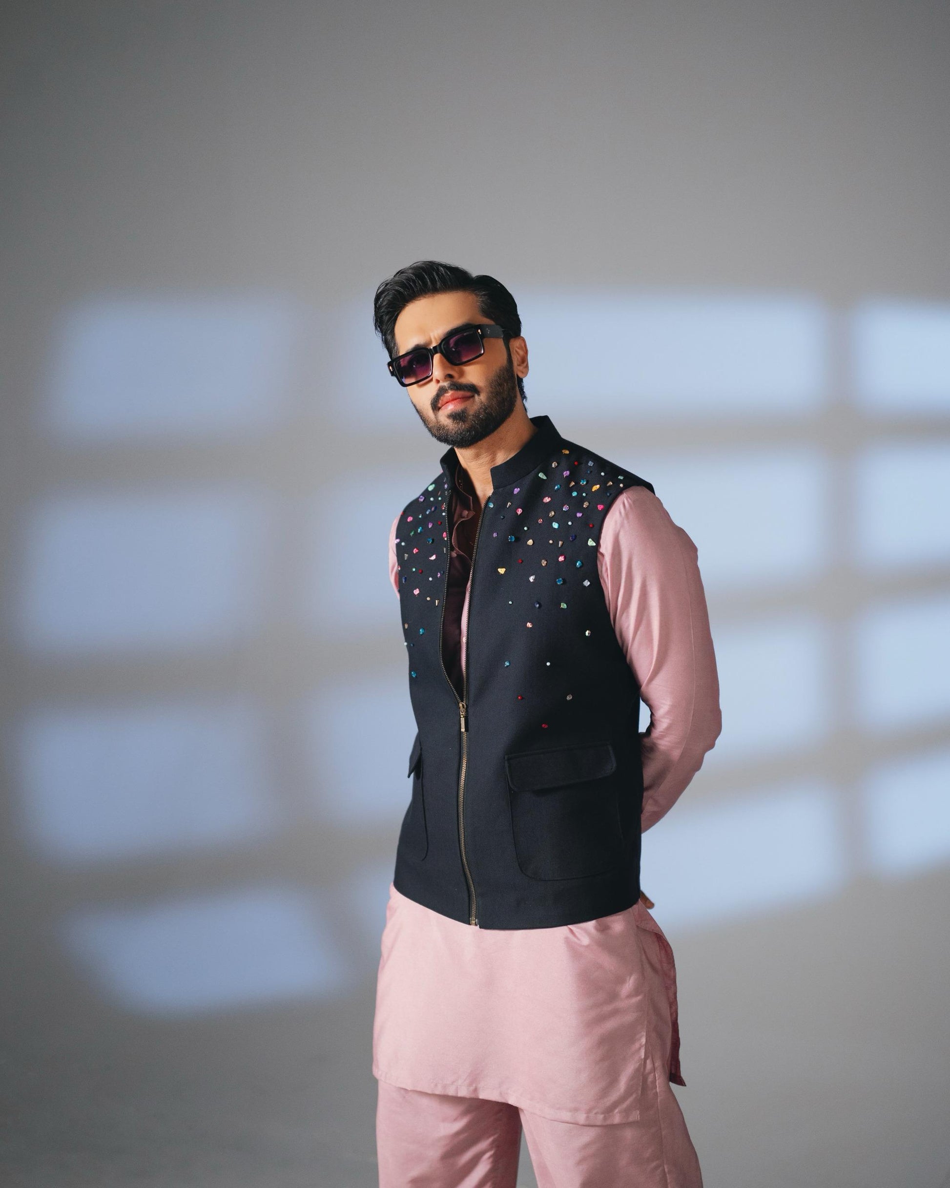 Elevate your wardrobe with the Hand Embroidered Stones Outfit by Snug, inspired by fashion icon Fahad Mustafa. This meticulously crafted ensemble features intricate hand embroidery adorned with delicate stones, enhancing its luxurious appeal. Designed with a convenient zipper, the waistcoat pairs seamlessly with the kurta trouser for a sophisticated look. Perfect for formal occasions, this outfit blends traditional artistry with modern style, making it a standout addition to your collection. Experience unmatched craftsmanship and timeless elegance with Snug’s exclusive design.